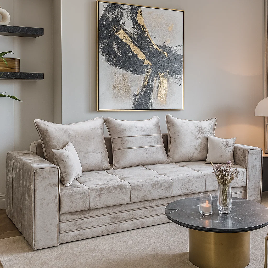 ✓ Tapițat cu stofă de înaltă calitate, rezistentă la peste 25.000 de cicli de frecare;